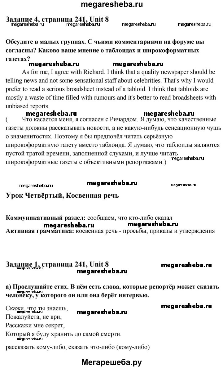 ГДЗ по английскому языку 10 класс Юхнель student's book решение к разделу: страница - 241