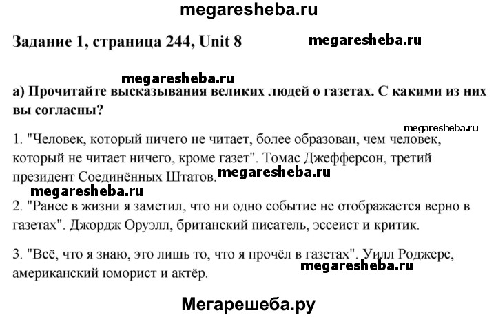 ГДЗ по английскому языку 10 класс Юхнель student's book решение к разделу: страница - 244
