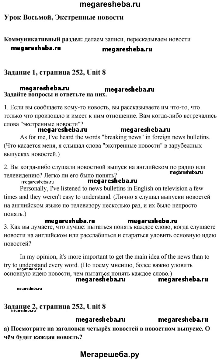 ГДЗ по английскому языку 10 класс Юхнель student's book решение к разделу: страница - 252