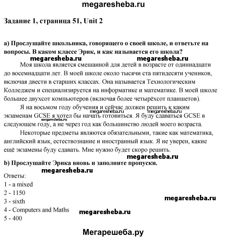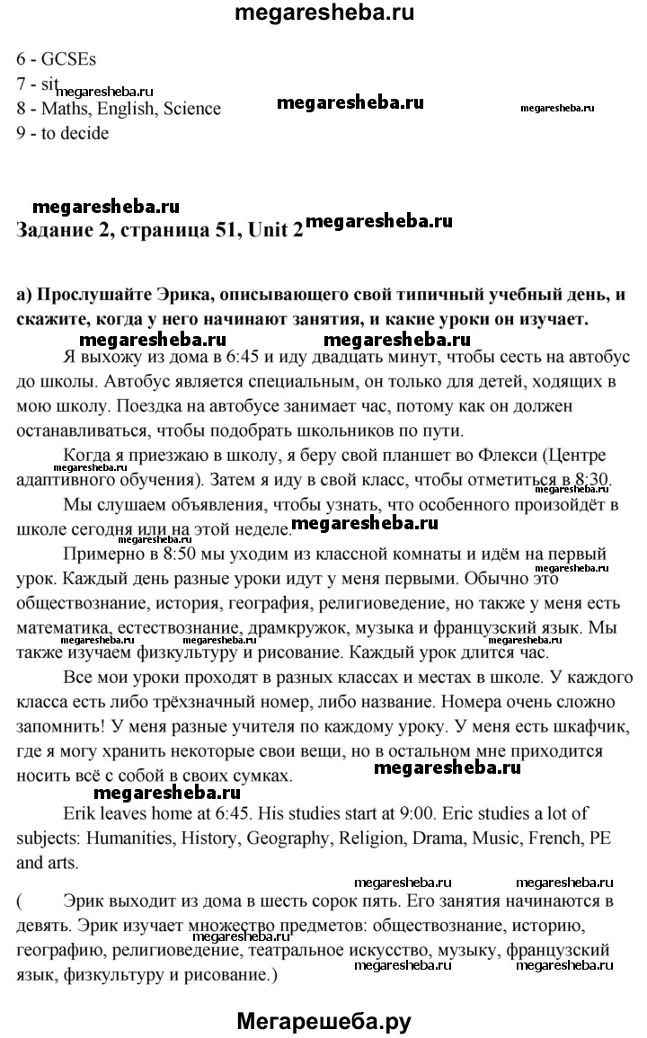 ГДЗ по английскому языку 10 класс Юхнель student's book решение к разделу: страница - 51