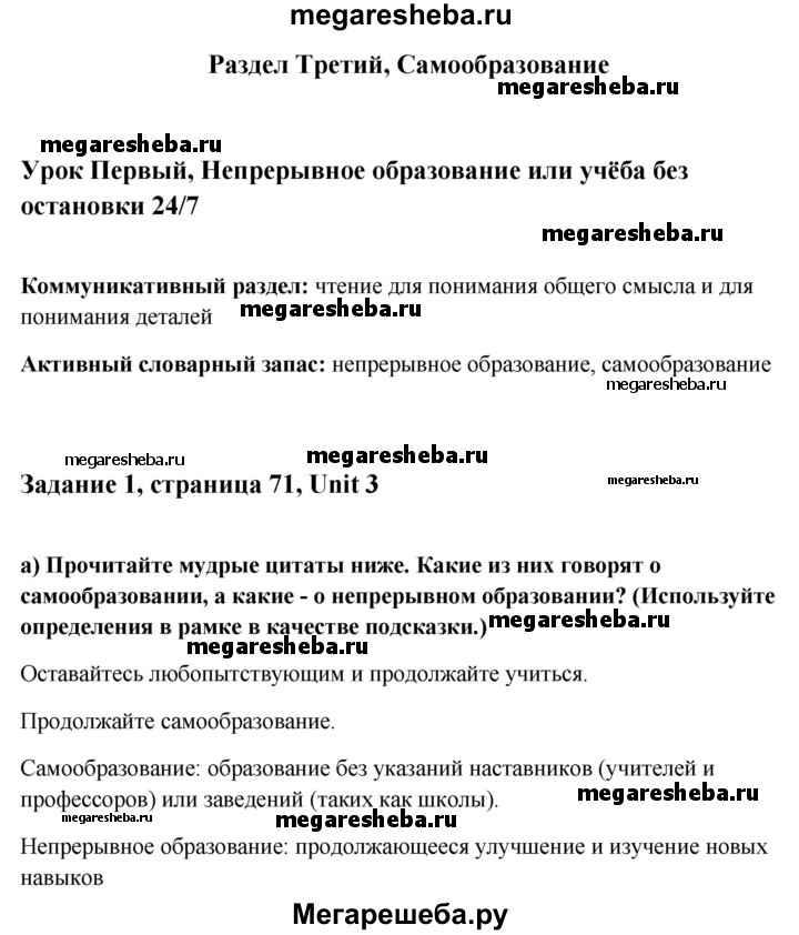 ГДЗ по английскому языку 10 класс Юхнель student's book решение к разделу: страница - 71