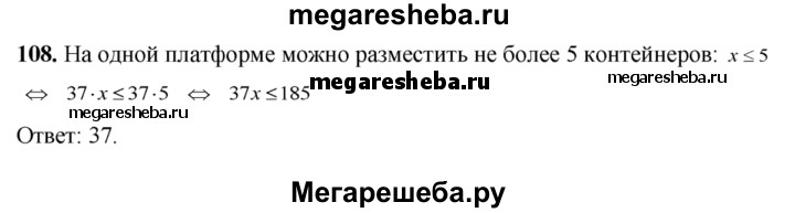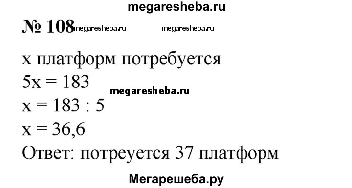 108. Сколько железнодорожных платформ потребуется для перевозки 183 контейнеров, если на одной платформе можно разместить не более 5 контейнеров?