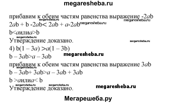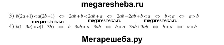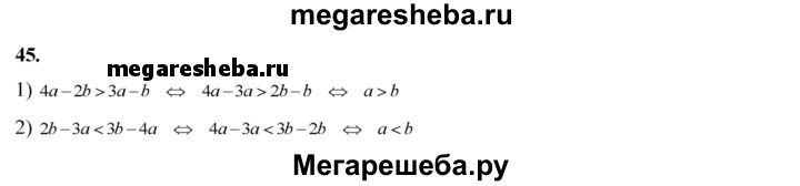 45. Доказать, что: 1) если 4а – 2b > За - b, то а > b; 2) если 2b - За < 3b - 4а, то а < b; 3) если b(2a + 1) b; 4) если b(1 - За) > а(1 – 3b), то а < b.