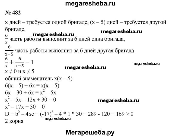 ГДЗ по алгебре 8 класс Алимов номер - 482