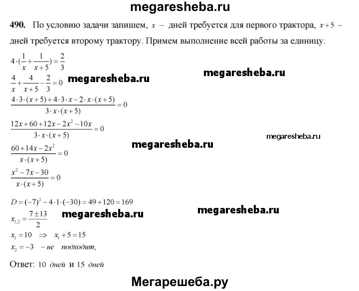 Подробный решебник (ГДЗ) по Алгебре за 8 (восьмой) класс - готовый ответ номер - 490. Авторы учебника: Алимов, Колягин, Сидоров. Издательство: Просвещение 2015.