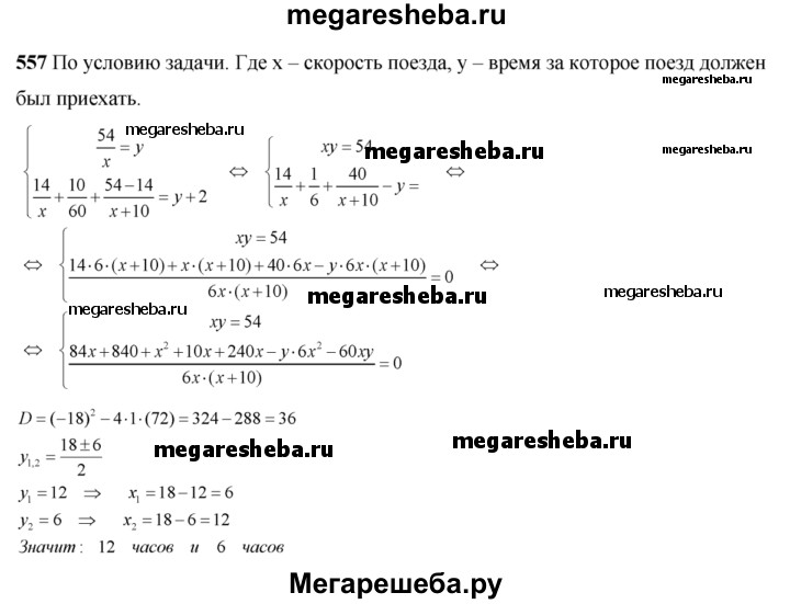Подробный решебник (ГДЗ) по Алгебре за 8 (восьмой) класс - готовый ответ номер - 557. Авторы учебника: Алимов, Колягин, Сидоров. Издательство: Просвещение 2015.