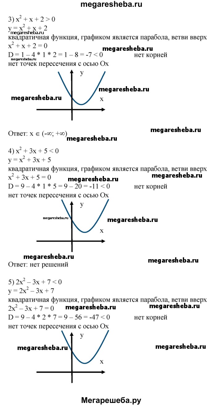 663. Построить график функции у = х^2 + х - 6. Определить по графику значения х, при которых функция принимает положительные значения; отрицательные значения. Решить квадратное неравенство