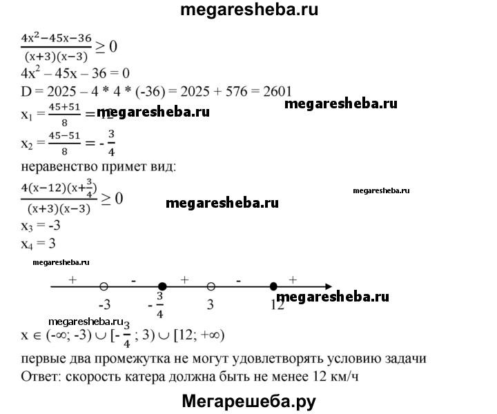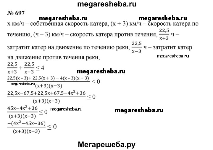 697. Катер должен не более чем за 4 ч пройти по течению реки 22,5 км и вернуться обратно. С какой скоростью относительно воды должен идти катер, если скорость течения реки равна 3 км/ч?