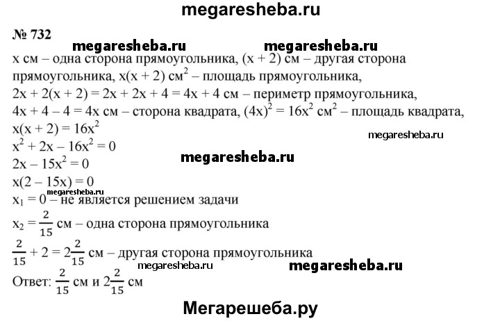 Подробный решебник (ГДЗ) по Алгебре за 8 (восьмой) класс - готовый ответ номер - 732. Авторы учебника: Алимов, Колягин, Сидоров. Издательство: Просвещение 2015.