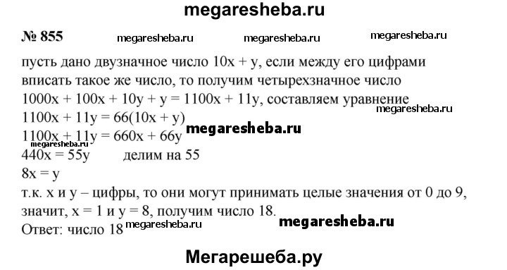855. Если между цифрами двузначного числа х вписать это же число, то полученное четырехзначное число будет в 66 раз больше первоначального двузначного. Найти х.