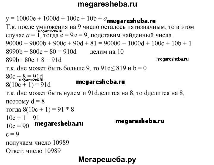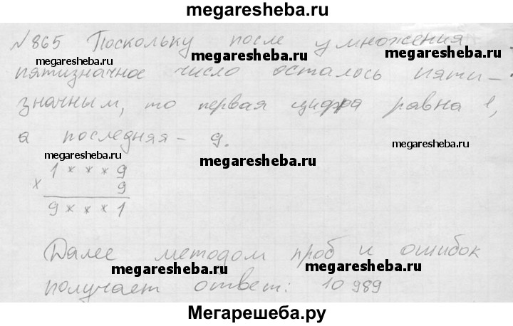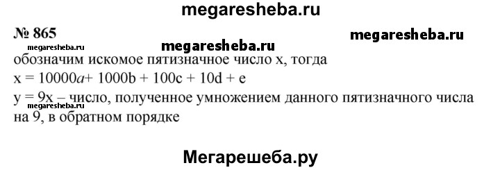 865. Найти пятизначное число, если известно, что при умножении этого числа на 9 получается пятизначное число, записанное теми же цифрами, но в обратном порядке.