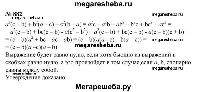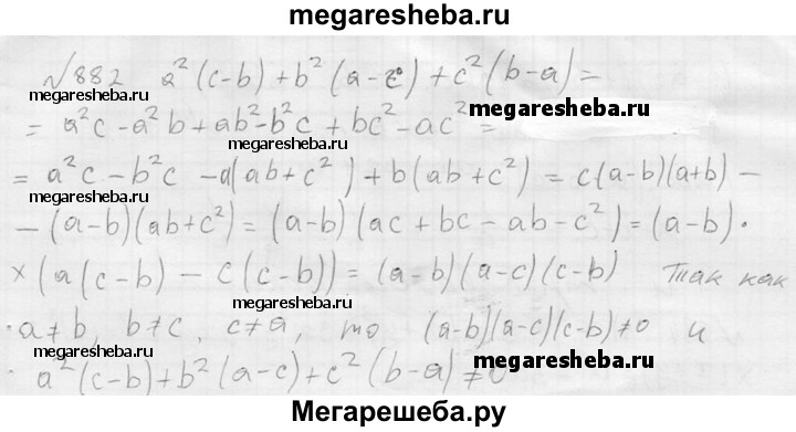 882. Доказать, что выражение А^2 (с -b) + b2 (а - с) + с^2 (b - а) не равно нулю, если а, b, с — попарно не равные между собой числа.