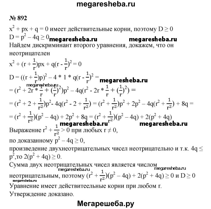 892. Доказать, что если уравнение х^2 + px + q = 0 имеет действительные корни, то уравнение также имеет действительные корни при любом r ≠ 0.
