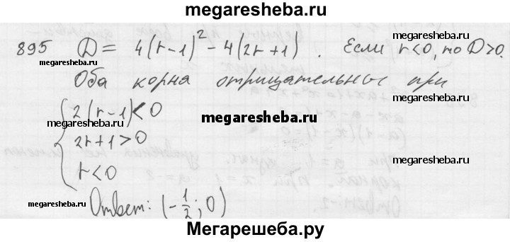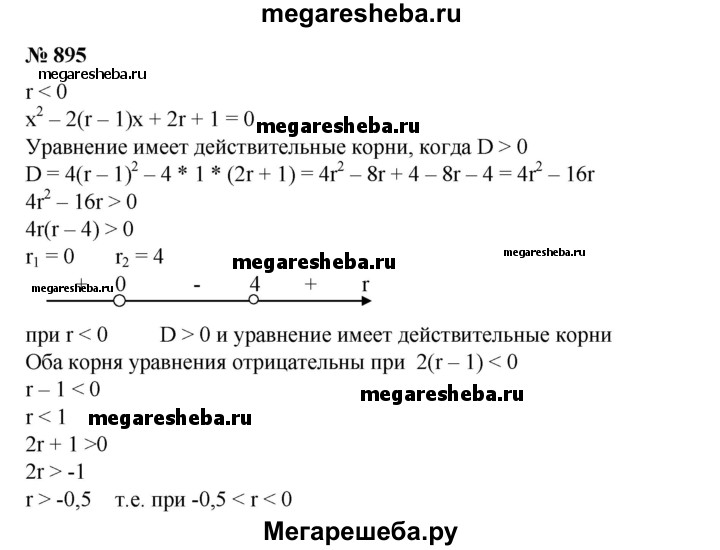 895. Доказать, что если r <0, то квадратное уравнение Х^2-2(r-1)х + 2r + 1 = 0 имеет действительные корни. При каких значениях r(r<0) оба корня этого уравнения отрицательны?