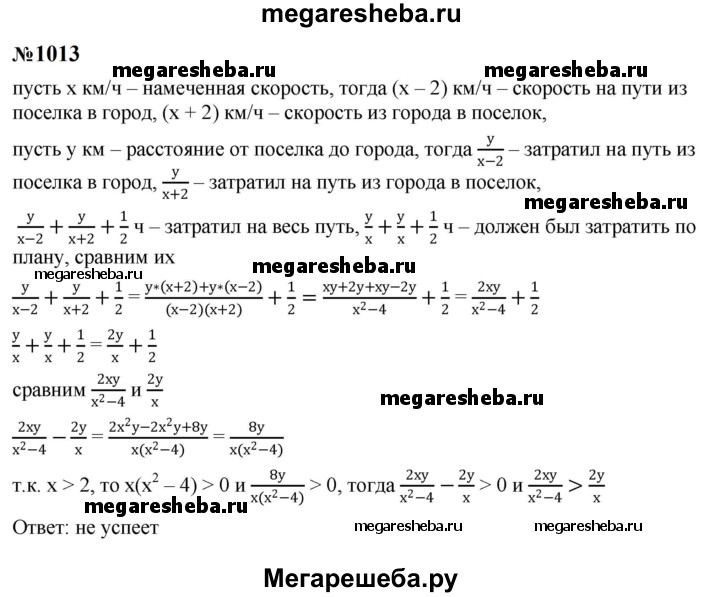 Подробный решебник (ГДЗ) по Алгебре за 8 (восьмой) класс - готовый ответ номер - 1013. Авторы учебника: Макарычев, Миндюк, Нешков, Суворова. Издательство: Просвещение 2015-2025.