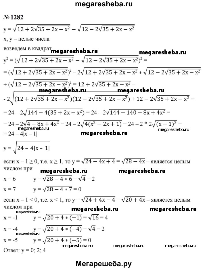 Подробный решебник (ГДЗ) по Алгебре за 8 (восьмой) класс - готовый ответ номер - 1282. Авторы учебника: Макарычев, Миндюк, Нешков, Суворова. Издательство: Просвещение 2015-2025.