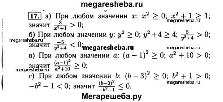 Подробный решебник (ГДЗ) по Алгебре за 8 (восьмой) класс - готовый ответ номер - 17. Авторы учебника: Макарычев, Миндюк, Нешков, Суворова. Издательство: Просвещение 2015-2025.
