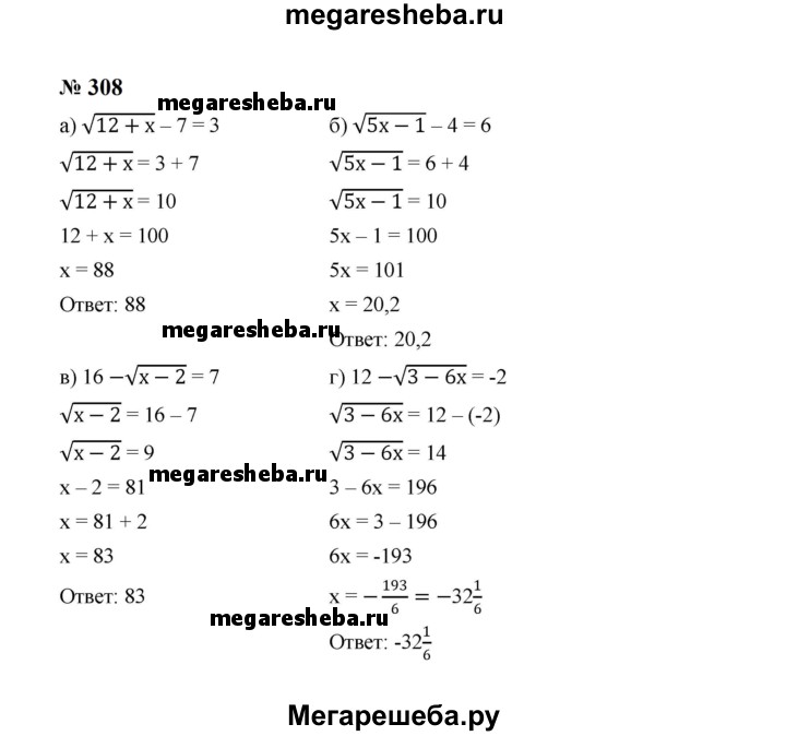 ГДЗ по алгебре 8 класс Макарычев номер - 308