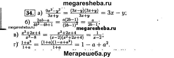 Подробный решебник (ГДЗ) по Алгебре за 8 (восьмой) класс - готовый ответ номер - 34. Авторы учебника: Макарычев, Миндюк, Нешков, Суворова. Издательство: Просвещение 2015-2025.