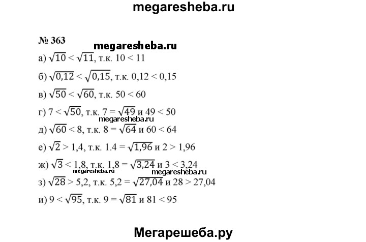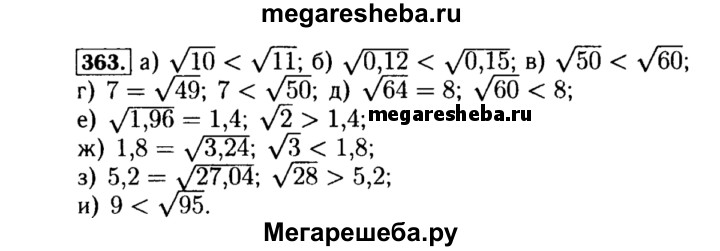 Подробный решебник (ГДЗ) по Алгебре за 8 (восьмой) класс - готовый ответ номер - 363. Авторы учебника: Макарычев, Миндюк, Нешков, Суворова. Издательство: Просвещение 2015-2025.