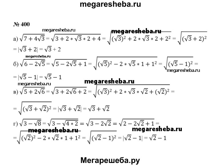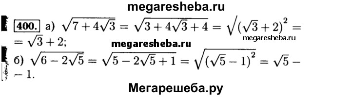 Подробный решебник (ГДЗ) по Алгебре за 8 (восьмой) класс - готовый ответ номер - 400. Авторы учебника: Макарычев, Миндюк, Нешков, Суворова. Издательство: Просвещение 2015-2025.