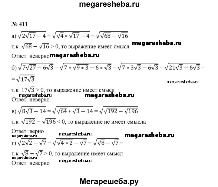 Подробный решебник (ГДЗ) по Алгебре за 8 (восьмой) класс - готовый ответ номер - 411. Авторы учебника: Макарычев, Миндюк, Нешков, Суворова. Издательство: Просвещение 2015-2025.