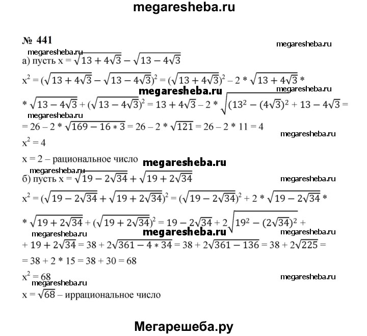 Подробный решебник (ГДЗ) по Алгебре за 8 (восьмой) класс - готовый ответ номер - 441. Авторы учебника: Макарычев, Миндюк, Нешков, Суворова. Издательство: Просвещение 2015-2025.