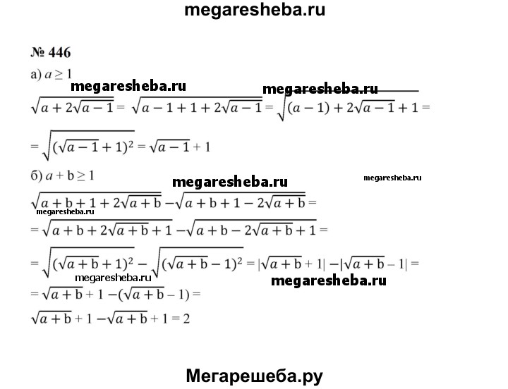 Подробный решебник (ГДЗ) по Алгебре за 8 (восьмой) класс - готовый ответ номер - 446. Авторы учебника: Макарычев, Миндюк, Нешков, Суворова. Издательство: Просвещение 2015-2025.