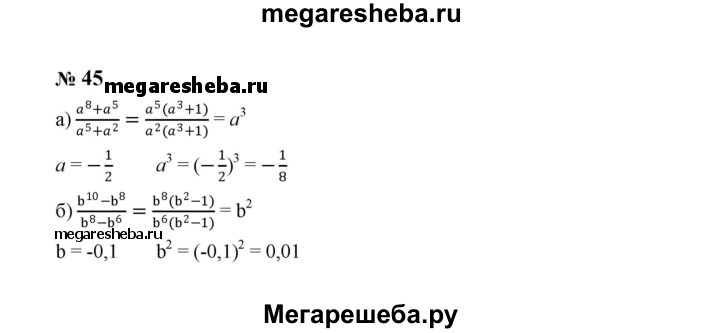 Подробный решебник (ГДЗ) по Алгебре за 8 (восьмой) класс - готовый ответ номер - 45. Авторы учебника: Макарычев, Миндюк, Нешков, Суворова. Издательство: Просвещение 2015-2025.