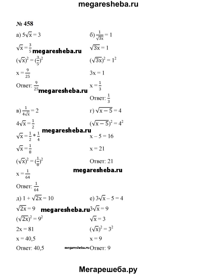 ГДЗ по алгебре 8 класс Макарычев номер - 458