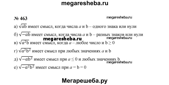 Подробный решебник (ГДЗ) по Алгебре за 8 (восьмой) класс - готовый ответ номер - 463. Авторы учебника: Макарычев, Миндюк, Нешков, Суворова. Издательство: Просвещение 2015-2025.