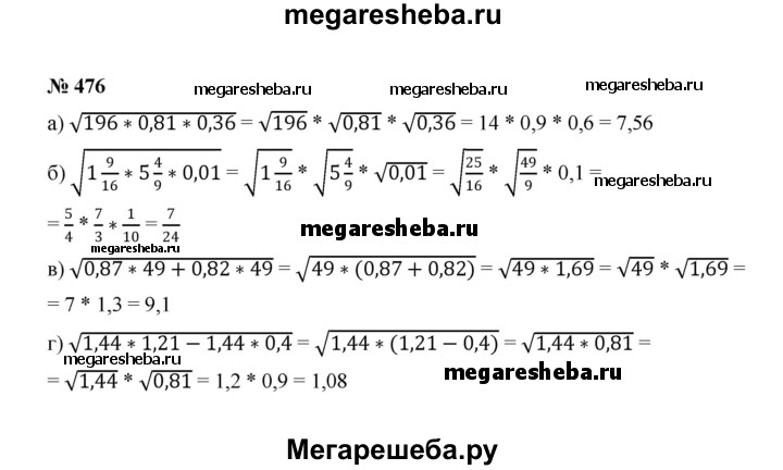 ГДЗ по алгебре 8 класс Макарычев номер - 476