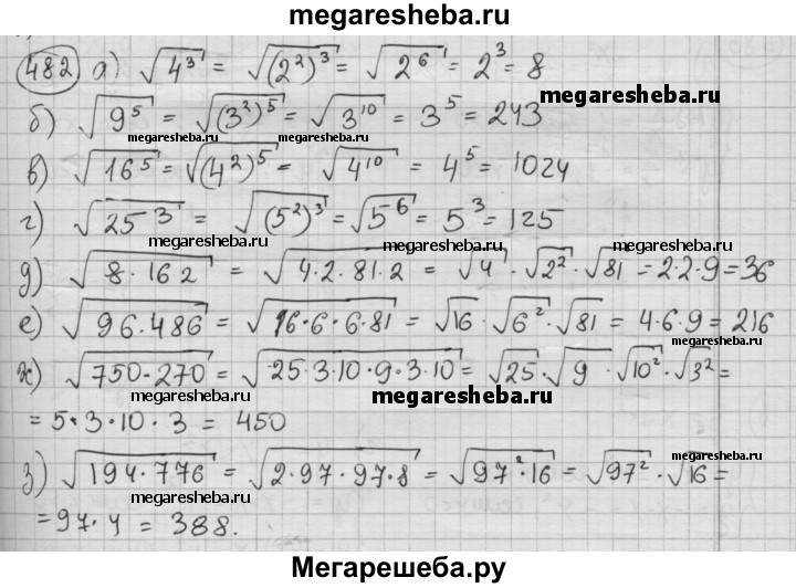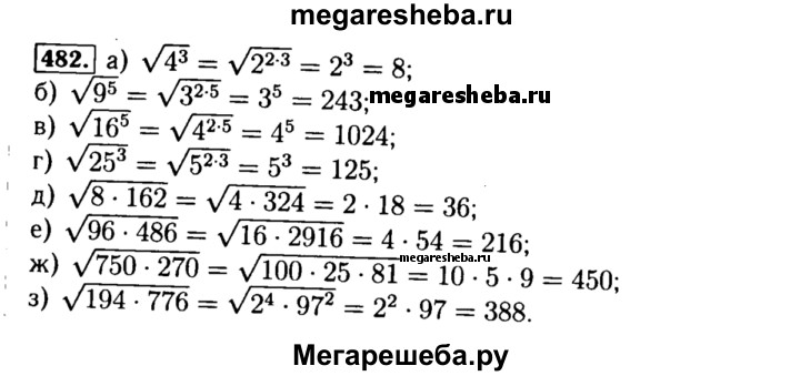 ГДЗ по алгебре 8 класс Макарычев номер - 482