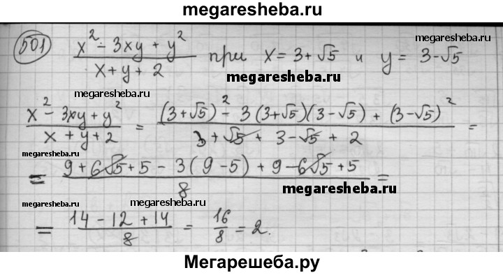 Подробный решебник (ГДЗ) по Алгебре за 8 (восьмой) класс - готовый ответ номер - 501. Авторы учебника: Макарычев, Миндюк, Нешков, Суворова. Издательство: Просвещение 2015-2025.