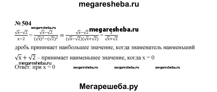 Подробный решебник (ГДЗ) по Алгебре за 8 (восьмой) класс - готовый ответ номер - 504. Авторы учебника: Макарычев, Миндюк, Нешков, Суворова. Издательство: Просвещение 2015-2025.