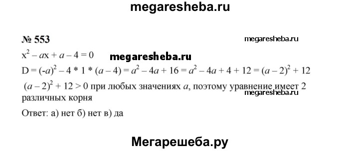 Подробный решебник (ГДЗ) по Алгебре за 8 (восьмой) класс - готовый ответ номер - 553. Авторы учебника: Макарычев, Миндюк, Нешков, Суворова. Издательство: Просвещение 2015-2025.