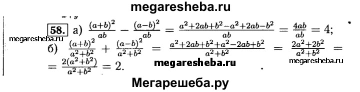 Подробный решебник (ГДЗ) по Алгебре за 8 (восьмой) класс - готовый ответ номер - 58. Авторы учебника: Макарычев, Миндюк, Нешков, Суворова. Издательство: Просвещение 2015-2025.