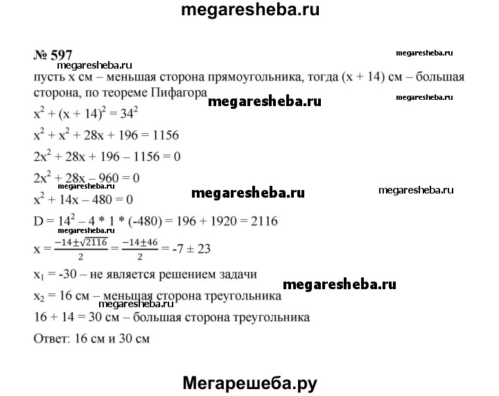 Подробный решебник (ГДЗ) по Алгебре за 8 (восьмой) класс - готовый ответ номер - 597. Авторы учебника: Макарычев, Миндюк, Нешков, Суворова. Издательство: Просвещение 2015-2025.