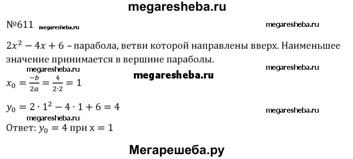Подробный решебник (ГДЗ) по Алгебре за 8 (восьмой) класс - готовый ответ номер - 611. Авторы учебника: Макарычев, Миндюк, Нешков, Суворова. Издательство: Просвещение 2015-2025.