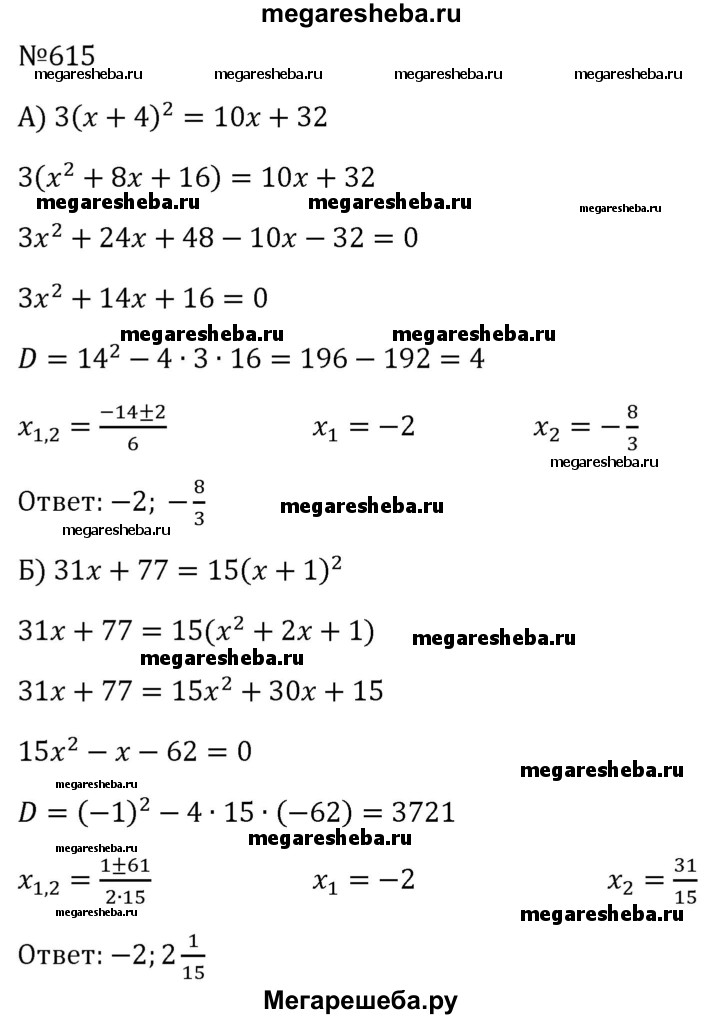 ГДЗ по алгебре 8 класс Макарычев номер - 615