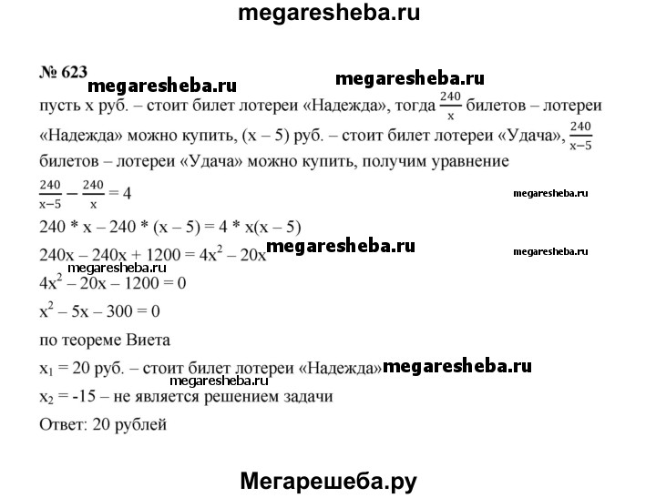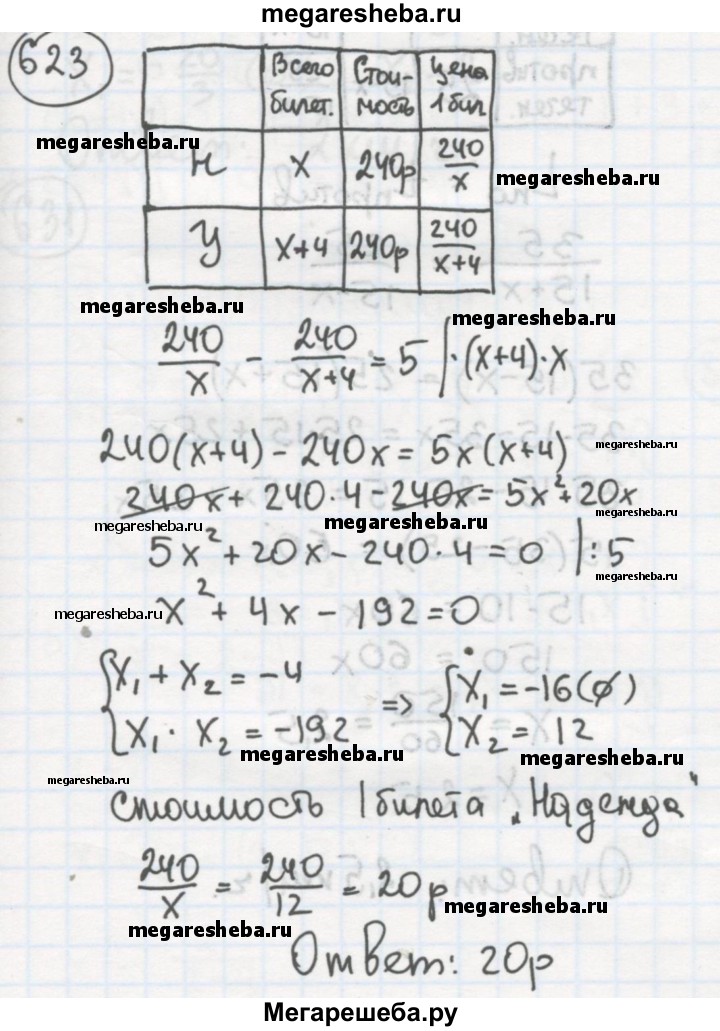 Подробный решебник (ГДЗ) по Алгебре за 8 (восьмой) класс - готовый ответ номер - 623. Авторы учебника: Макарычев, Миндюк, Нешков, Суворова. Издательство: Просвещение 2015-2025.