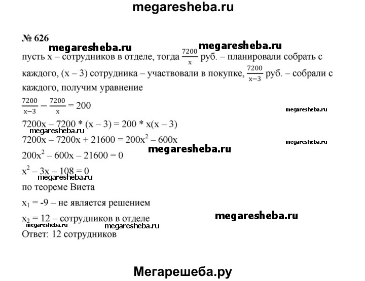 Подробный решебник (ГДЗ) по Алгебре за 8 (восьмой) класс - готовый ответ номер - 626. Авторы учебника: Макарычев, Миндюк, Нешков, Суворова. Издательство: Просвещение 2015-2025.