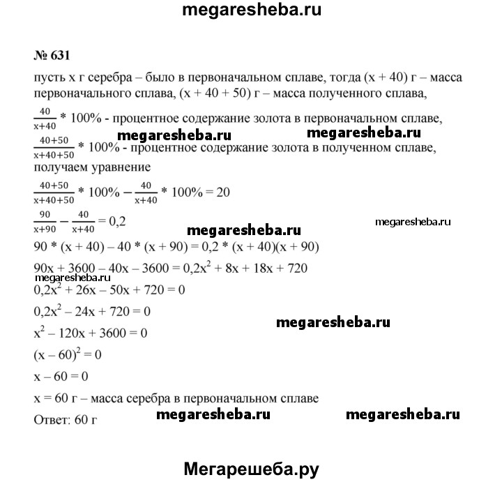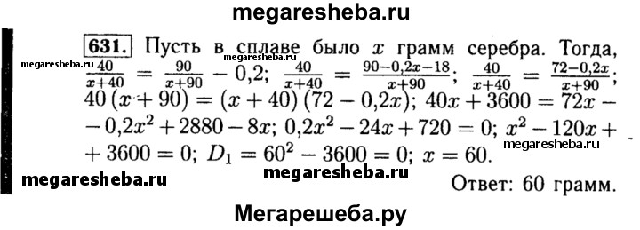 Подробный решебник (ГДЗ) по Алгебре за 8 (восьмой) класс - готовый ответ номер - 631. Авторы учебника: Макарычев, Миндюк, Нешков, Суворова. Издательство: Просвещение 2015-2025.