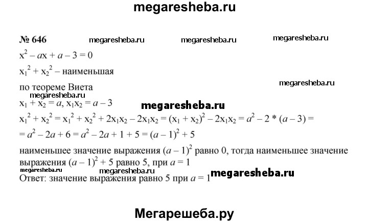Подробный решебник (ГДЗ) по Алгебре за 8 (восьмой) класс - готовый ответ номер - 646. Авторы учебника: Макарычев, Миндюк, Нешков, Суворова. Издательство: Просвещение 2015-2025.
