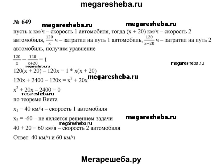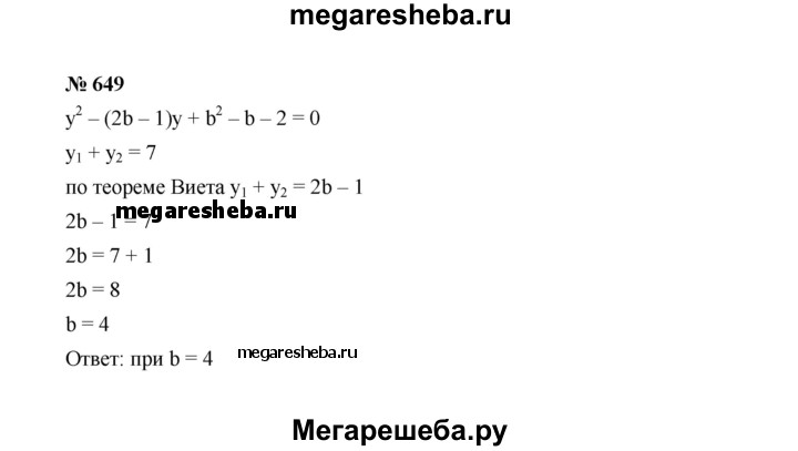 Подробный решебник (ГДЗ) по Алгебре за 8 (восьмой) класс - готовый ответ номер - 649. Авторы учебника: Макарычев, Миндюк, Нешков, Суворова. Издательство: Просвещение 2015-2025.