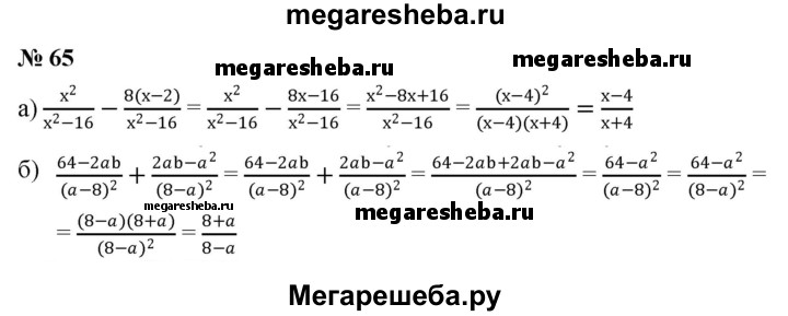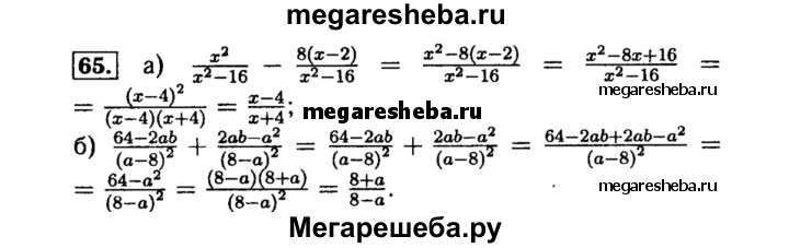 Подробный решебник (ГДЗ) по Алгебре за 8 (восьмой) класс - готовый ответ номер - 65. Авторы учебника: Макарычев, Миндюк, Нешков, Суворова. Издательство: Просвещение 2015-2025.