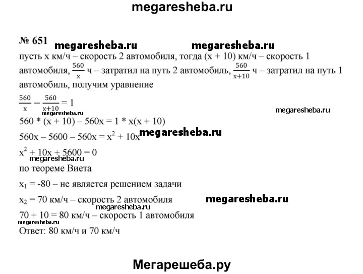 Подробный решебник (ГДЗ) по Алгебре за 8 (восьмой) класс - готовый ответ номер - 651. Авторы учебника: Макарычев, Миндюк, Нешков, Суворова. Издательство: Просвещение 2015-2025.