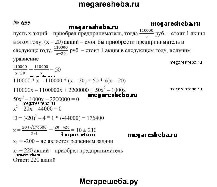 Подробный решебник (ГДЗ) по Алгебре за 8 (восьмой) класс - готовый ответ номер - 655. Авторы учебника: Макарычев, Миндюк, Нешков, Суворова. Издательство: Просвещение 2015-2025.