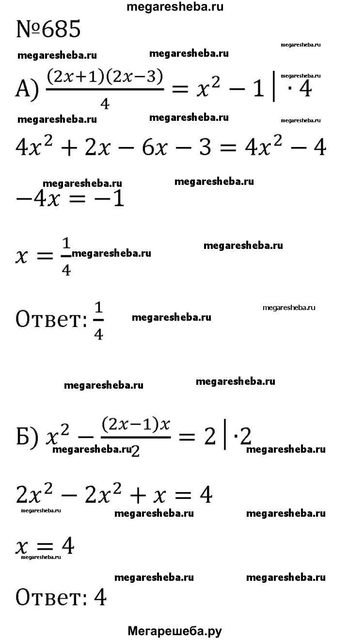 Подробный решебник (ГДЗ) по Алгебре за 8 (восьмой) класс - готовый ответ номер - 685. Авторы учебника: Макарычев, Миндюк, Нешков, Суворова. Издательство: Просвещение 2015-2025.
