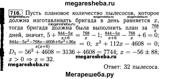 ГДЗ по алгебре 8 класс Макарычев номер - 716